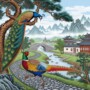🦚 Nature & Culture Theme – Features peacock, pheasant, riverside village, and mountain backdrop.