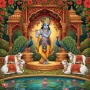 Theme: Vrindavan Gardens, Peacocks, Cows, Krishna’s Flute